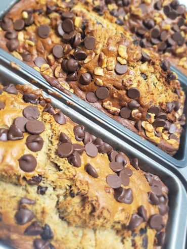 For when you almost want cake, but not quite. Our sweet bread slices are 1/8 of a loaf and irresistible! The flavors presented to markets so far have been: Chocolate Chip Zucchini Bread and Loaded Banana Bread (with walnuts, chocolate chips, and a brown butter glaze). Yes, we know that last one made you say "ooooooh"